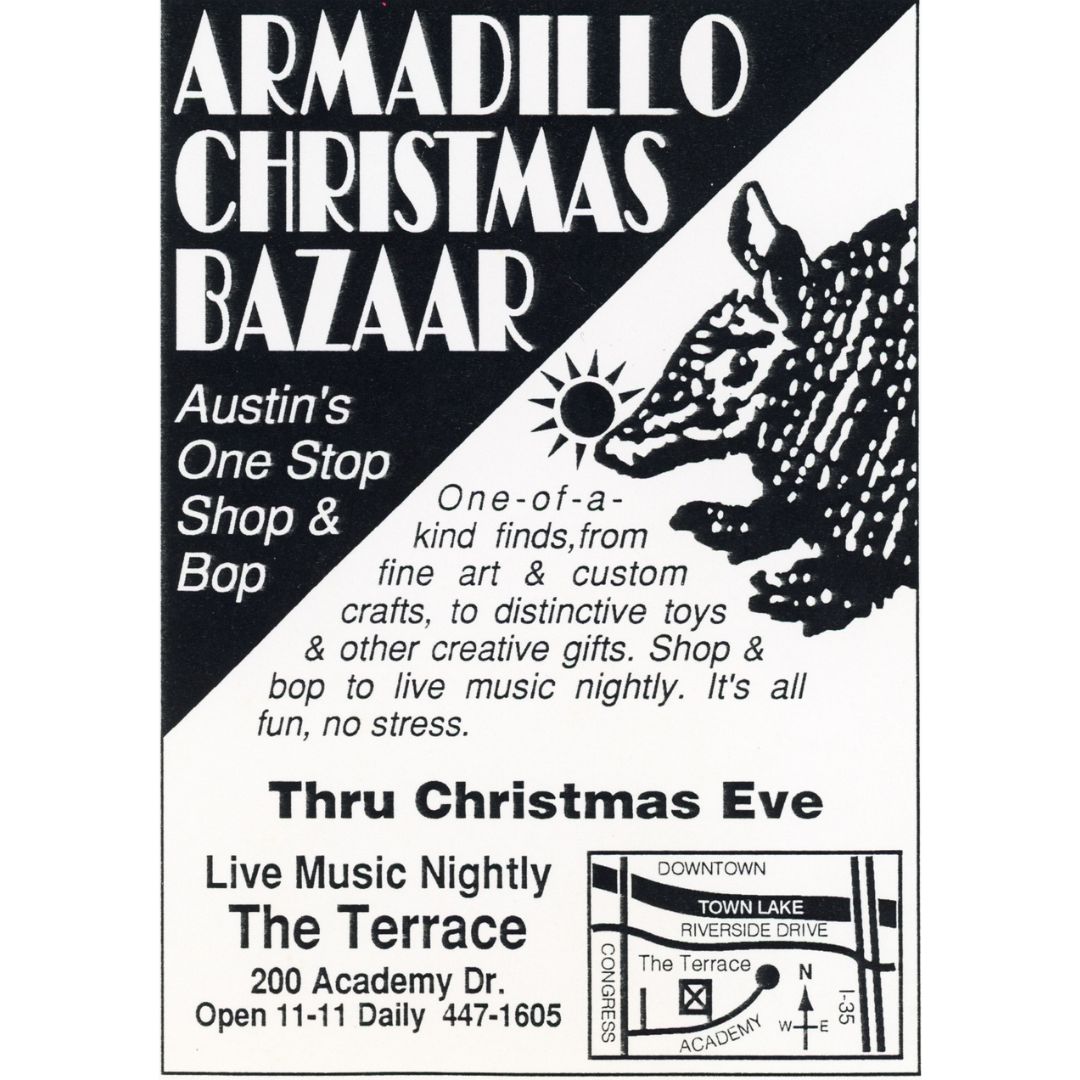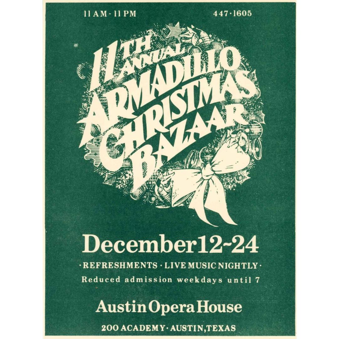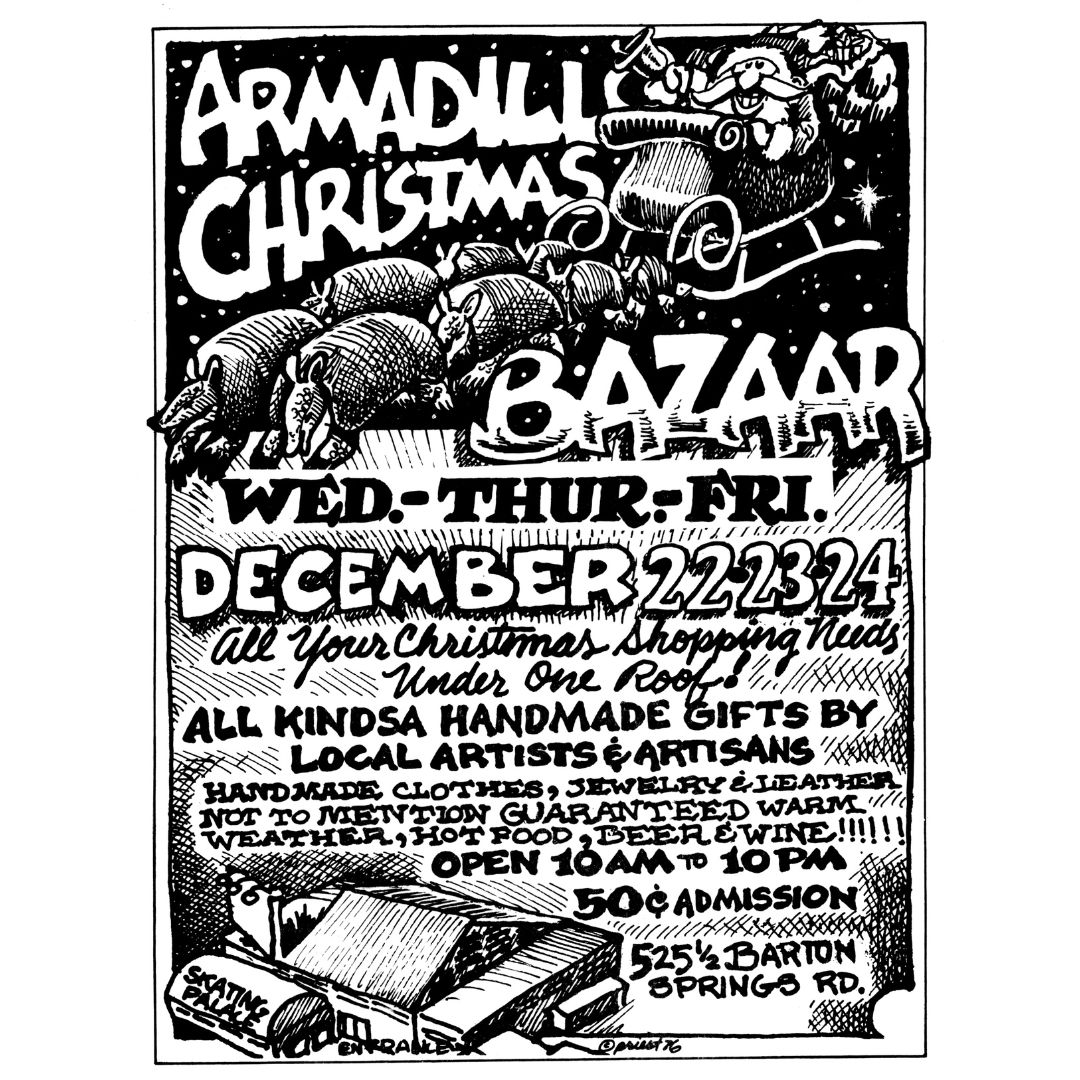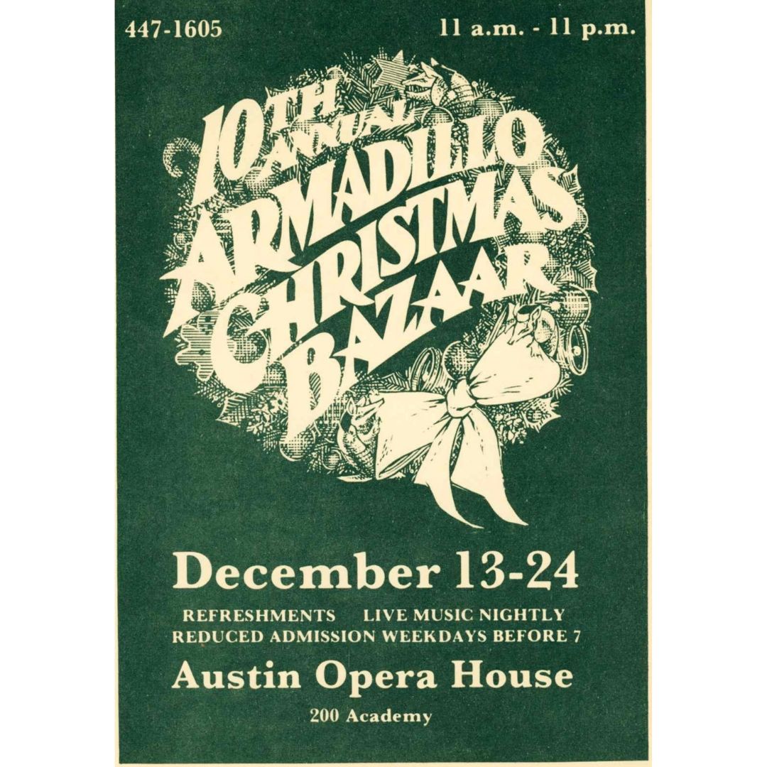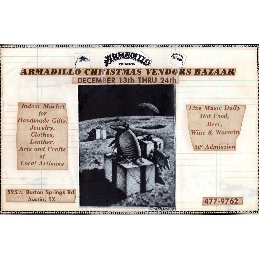 In 1978, Armadillo World Headquarters was in deep financial trouble and getting deeper. An offhand comment by Lucinda Williams inspired Bruce Willenzik to dream up the idea of a Christmas market at The Armadillo.
