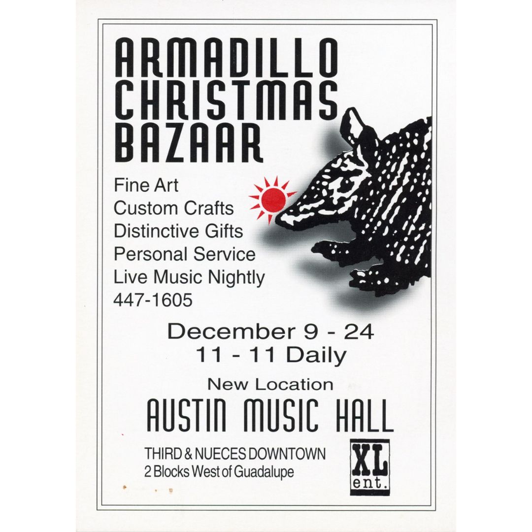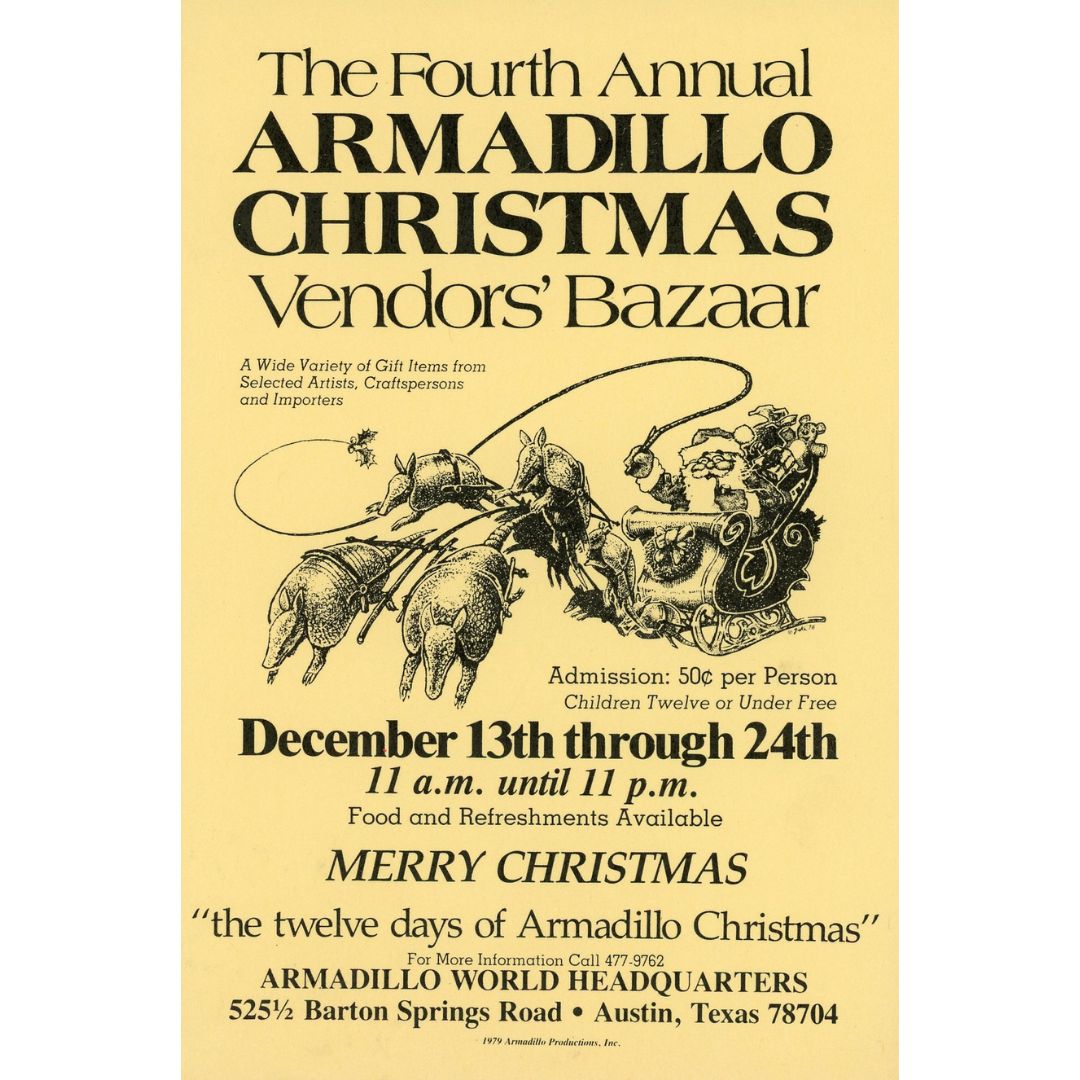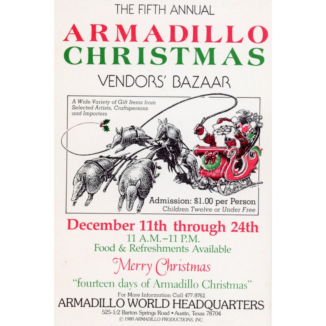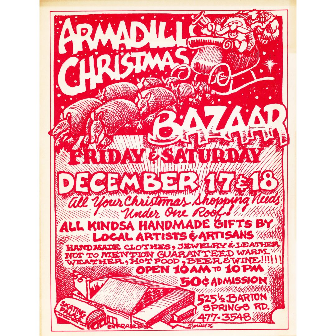 In 1978, Armadillo World Headquarters was in deep financial trouble and getting deeper. An offhand comment by Lucinda Williams inspired Bruce Willenzik to dream up the idea of a Christmas market at The Armadillo.
