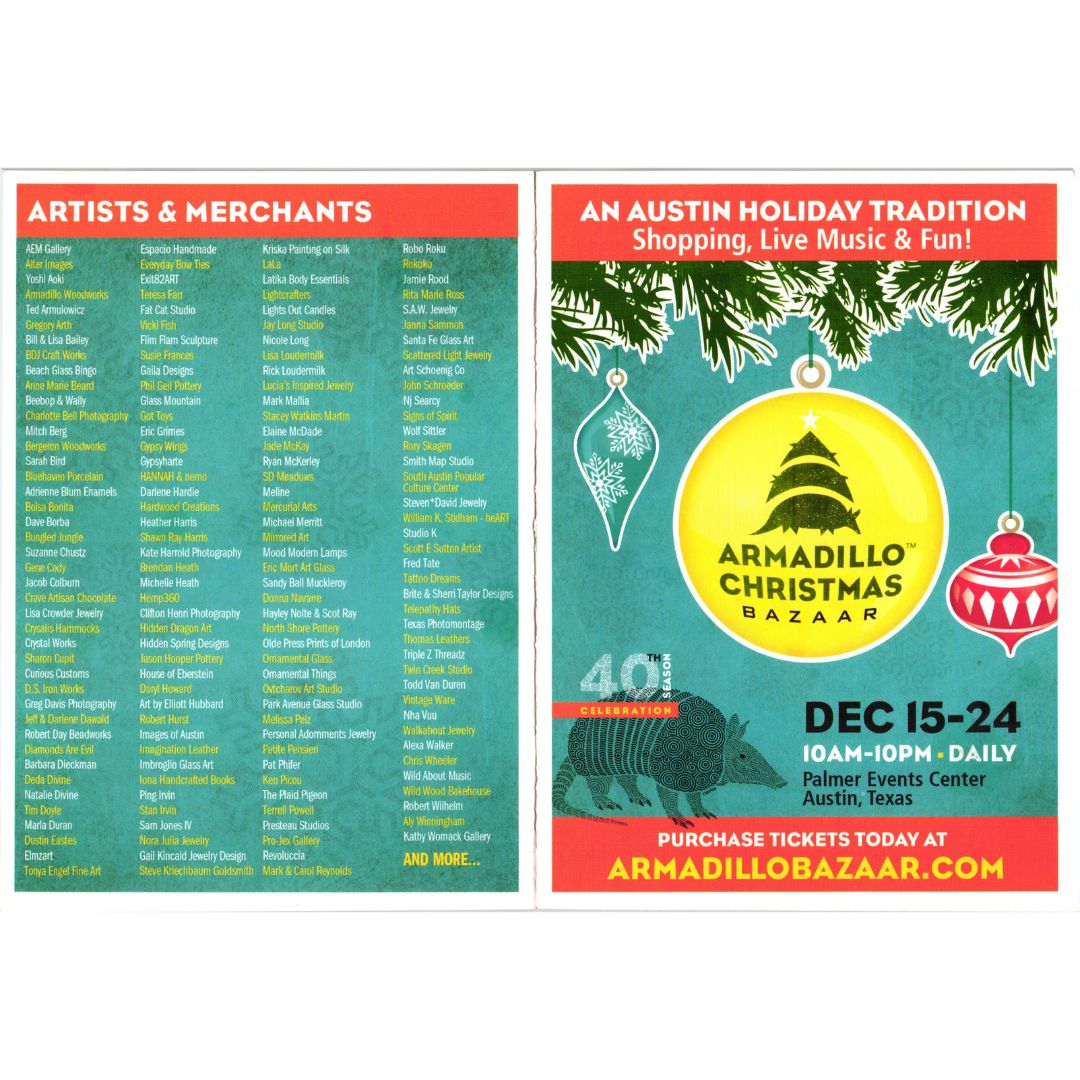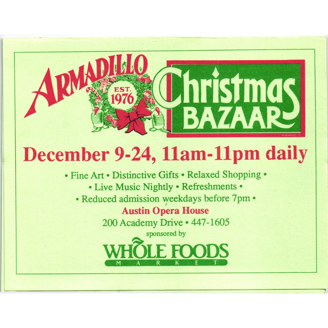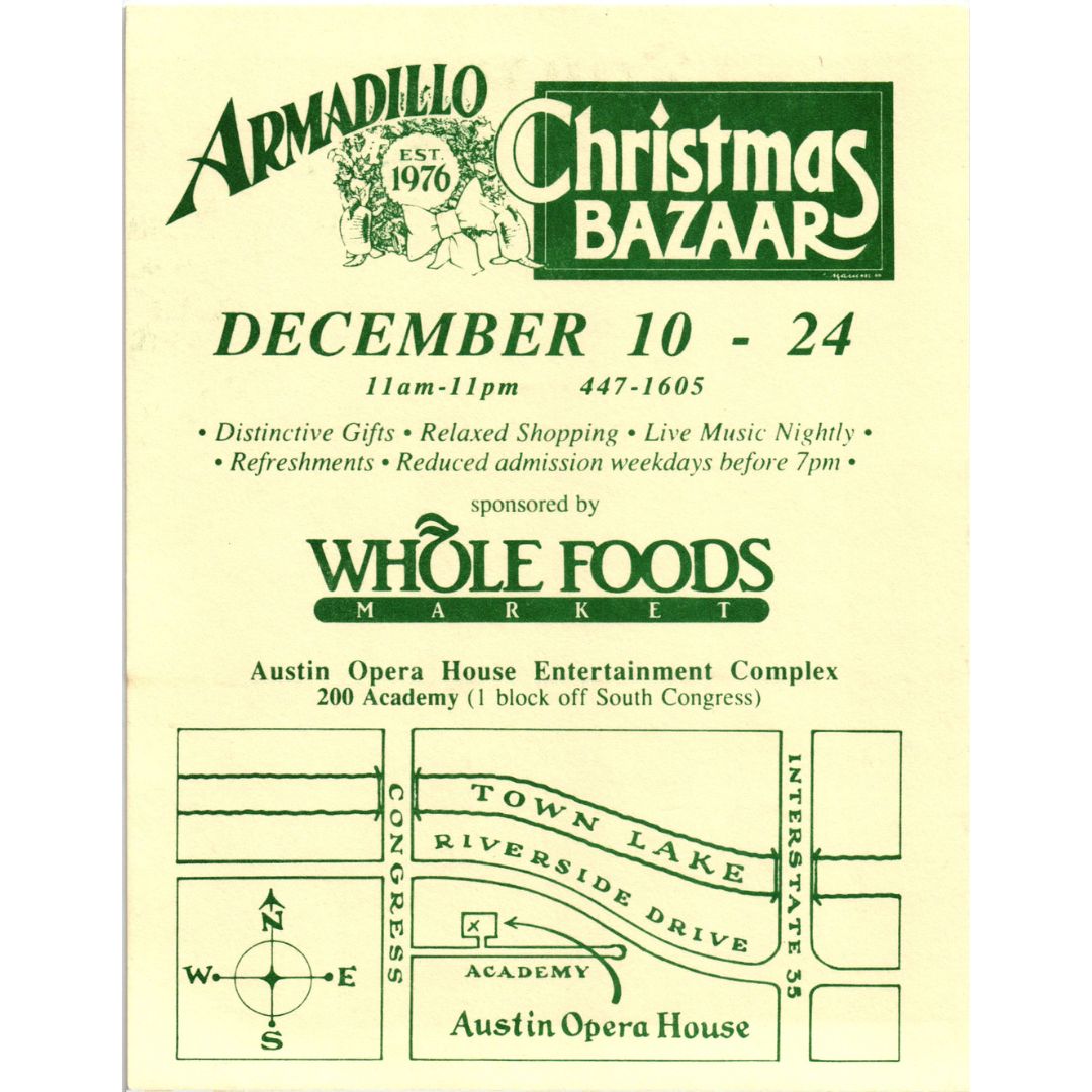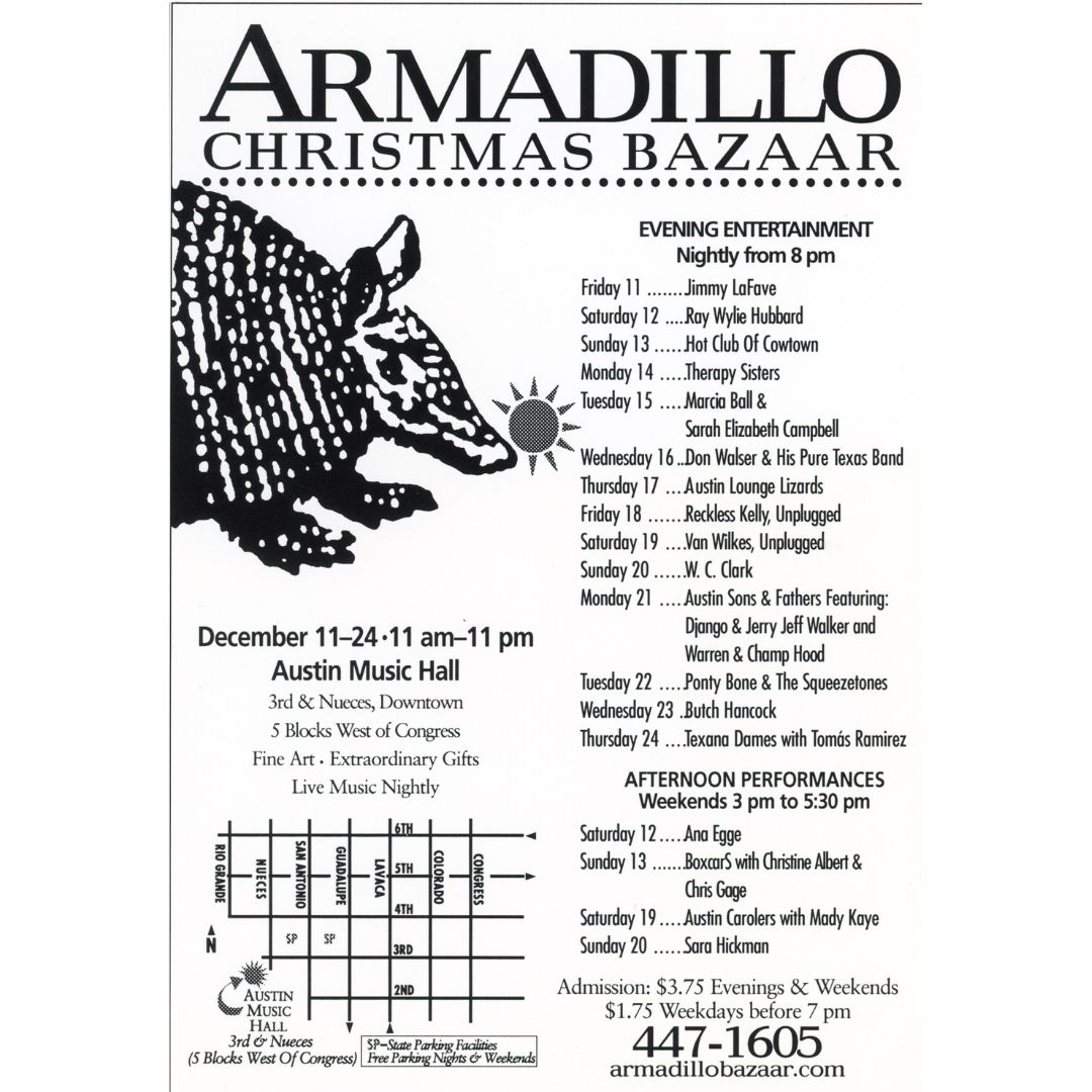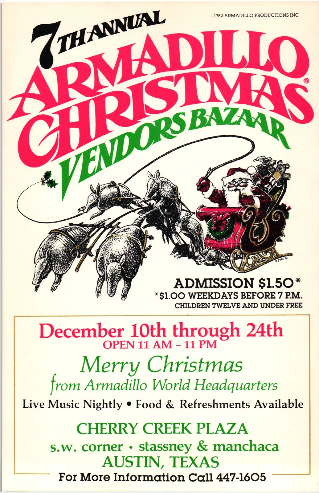 In 1978, Armadillo World Headquarters was in deep financial trouble and getting deeper. An offhand comment by Lucinda Williams inspired Bruce Willenzik to dream up the idea of a Christmas market at The Armadillo.