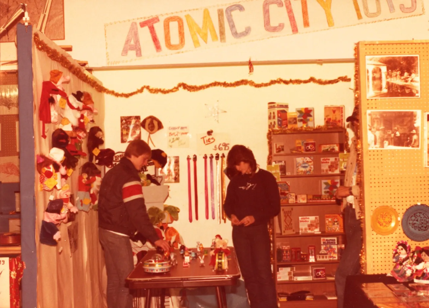 A long-time day shift manager Cris Arnold made his first appearance selling moccasins for an outfit called Bald Mountain. Bart and Cynthia Kelly joined the staff in 1981. Anne Kelley (Johnson) was born in 82.