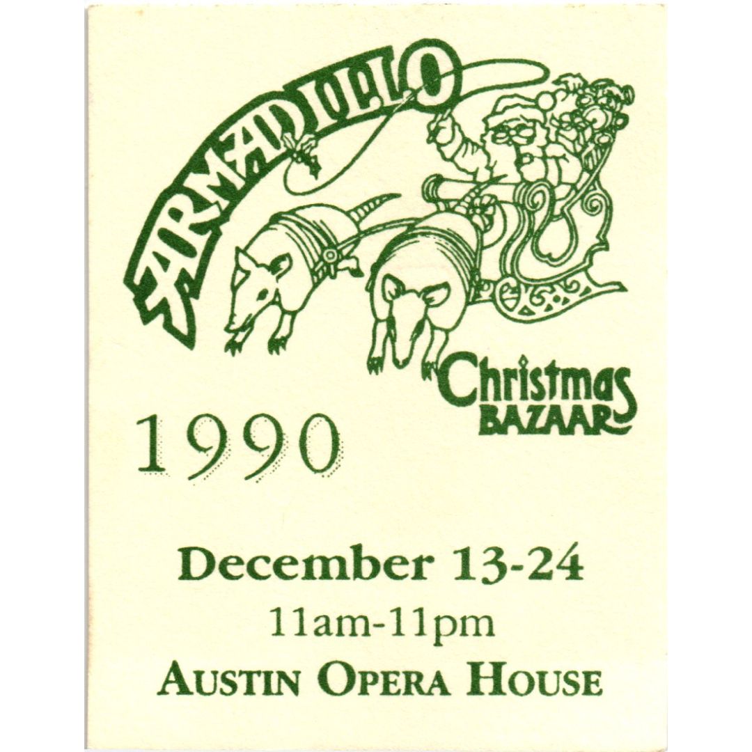 In 1985, a competing show with big backers tried to take the identity from the Armadillo Christmas Bazaar and have their own Dillo Christmas downtown. Resulting conflict and chaos upset Bruce enough to set him on a course of bringing the Armadillo philosophy and values to the rest of Austin through a long career in community service.