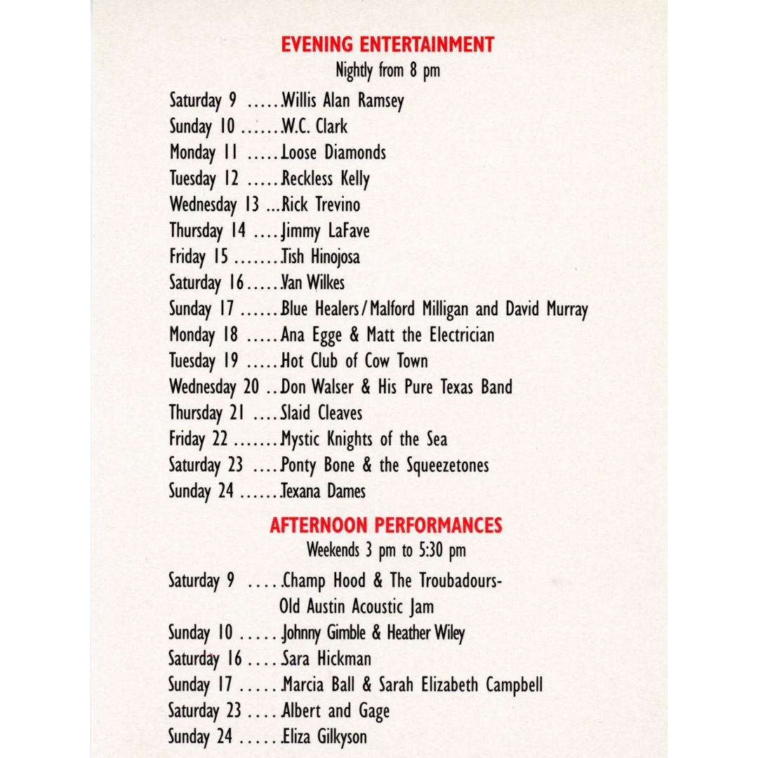 With the closing of Armadillo World Headquarters December 31st, 1980, the staff was forlorn and lost, looking forward to any way to get back together. Bruce Willenzik bourth the rights to the show from Hank Alrrich, Armadillo Productions. A lot of pressure was put on Bruce to continue the show without the facility. Miracles happen. 1981 began a new awakening.